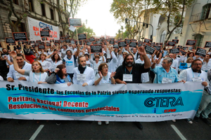 CTERA SE MOVILIZA POR LA PARITARIA NACIONAL DOCENTE. SENTADA FRENTE A LA CASA DE GOBIERNO DE BUENOS AIRES.