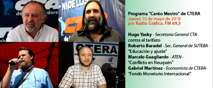DISCURSO DE EDUARDO PEREYRA - SEC. RELACIONES INTERNACIONALES DE CTERA - EN LA MULTITUDINARIA MARCHA DE ATEN NEUQUÉN A LA CASA DE GOBIERNO DE LA PROVINCIA, JUEVES 10 DE MAYO DE 2018.