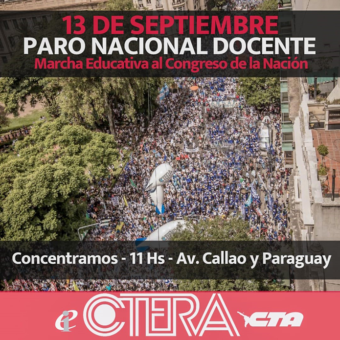 13 DE SEPTIEMBRE: LA CTERA PARA Y SE MOVILIZA.