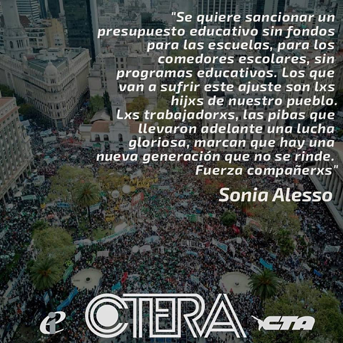 ARGENTINA: CTERA ANUNCIÓ ADHESIÓN A PARO NACIONAL DE 36 HORAS