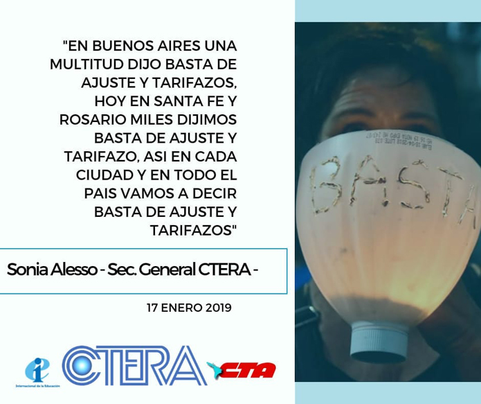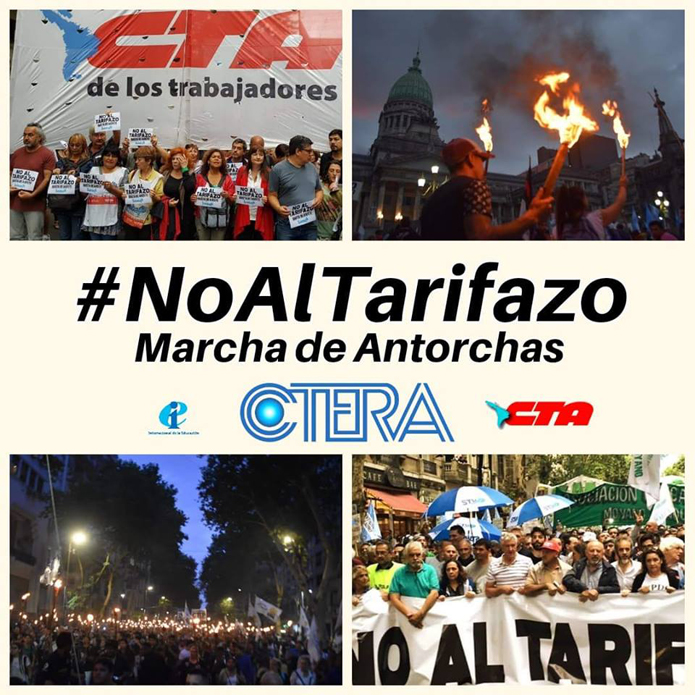 CTERA Y CTA EN LA MULTITUDINARIA MARCHA DE ANTORCHAS EN ROSARIO: ¡ BASTA DE TARIFAZOS ! ¡ BASTA DE AJUSTE !