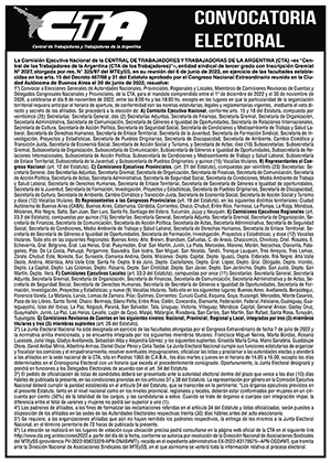 CONVOCATORIA A ELECCIONES GENERALES DE LA CENTRAL DE TRABAJADORES Y TRABAJADORAS DE LA ARGENTINA