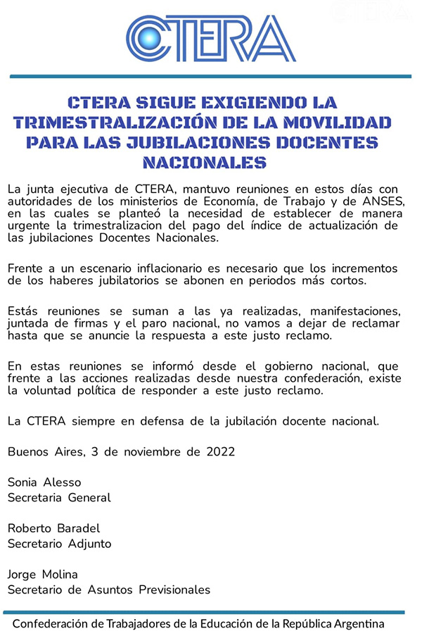 CTERA APOYA LA LUCHA DE UTE Y SE SOLIDARIZA CON LAS Y LOS TRABAJADORES DE LA EDUCACIÓN DE LA CIUDAD.