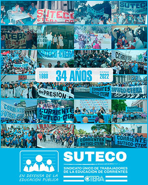 CTERA FELICITA A SUTECO POR SUS 34 AÑOS EN DEFENSA DE LA EDUCACIÓN PÚBLICA Y LOS DERECHOS DE LAS Y LOS TRABAJADORES DE LA EDUCACIÓN