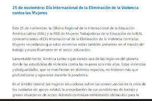 25 DE NOVIEMBRE: DÍA INTERNACIONAL DE LA ELIMINACIÓN DE LA VIOLENCIA CONTRA LAS MUJERES