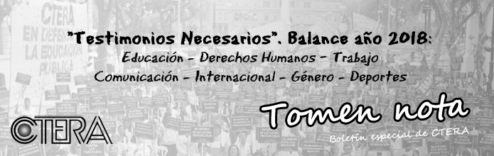 CTERA - Confederación de Trabajadores de la Educación de la República ArgentinaChile 654 - C1068 - Ciudad de Buenos Aires - República ArgentinaTelefonos: (+54) (11) 4300 - 5414Para más información: www.ctera.org.arMail: prensa@ctera.org.ar |